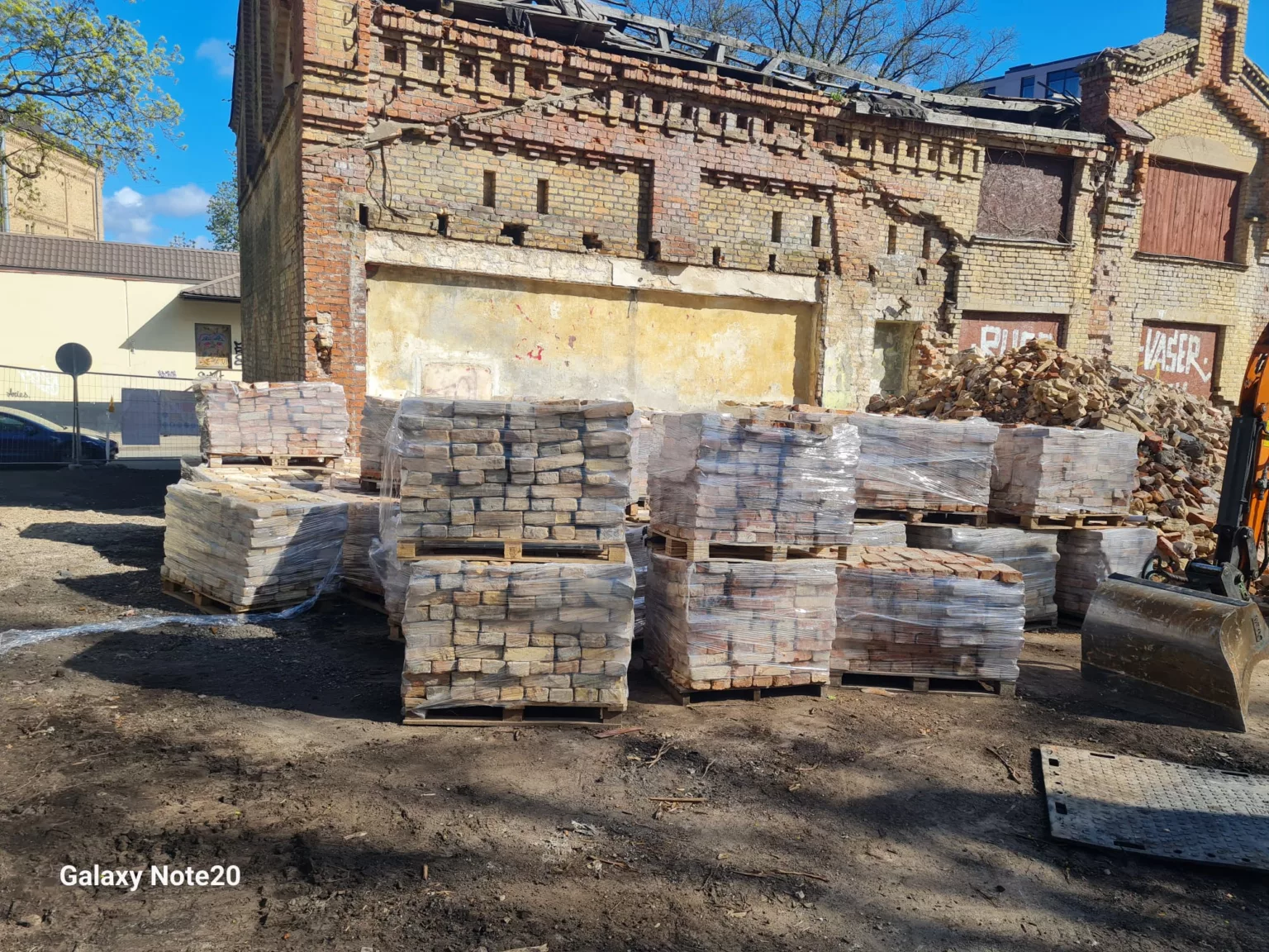 Ēku virszemes daļas tika saudzīgi demontētas, lai būtu iespējams atkārtoti izmantot vērtīgos vēsturiskos ķieģeļus, kas tika rūpīgi izlasīti tālākai izmantošanai.