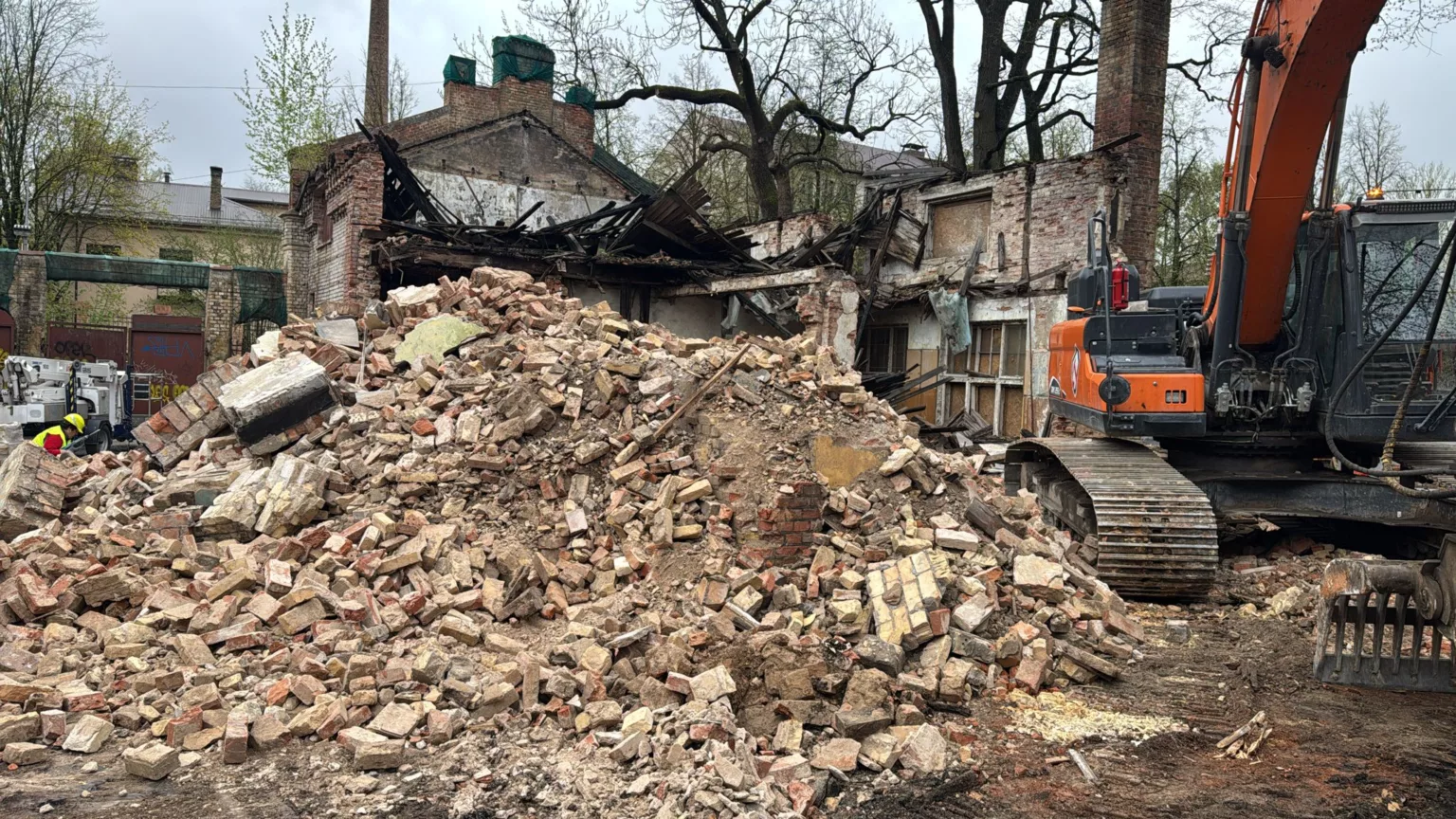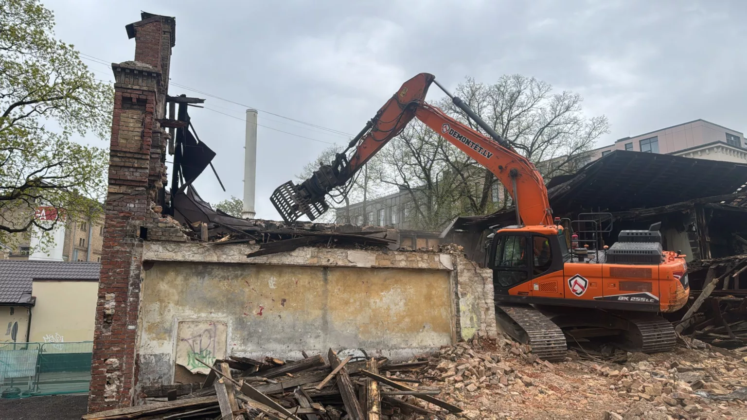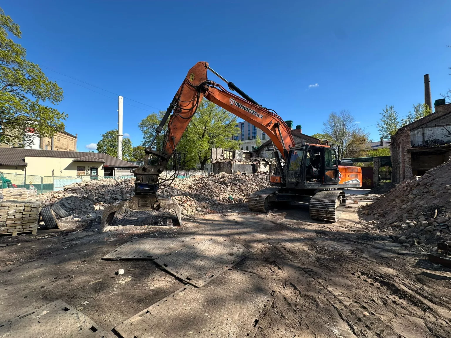 Objektā tika veikta daļēja ēku demontāža un nojaukšana, sagatavojot to pārbūvei par tirdzniecības centru. Degradētām ēkām (II būves grupa) tika realizēti virszemes un pazemes konstrukciju demontāžas darbi 551,2 m² platībā. Demontāža tika uzsākta tikai pēc tam, kad tika veikta saglabājamo sienu pagaidu metāla rāmju montāža un to nostiprināšana, nodrošinot drošu darba vidi un esošo konstrukciju stabilitāti.