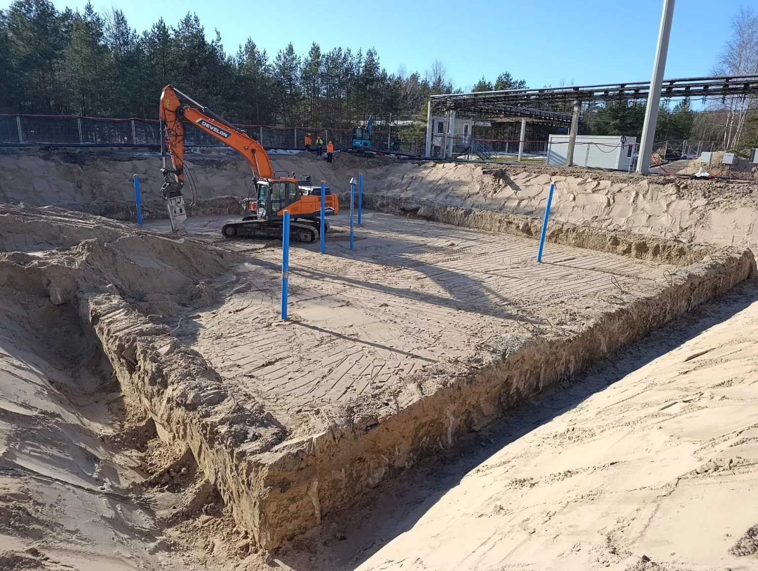 Demontāžas darbi tika veikti ar mini ekskavatoriem (~3,5 t), kas aprīkoti ar hidrauliskajiem āmuriem, nodrošinot efektīvu darbu veikšanu arī ierobežotos apstākļos.