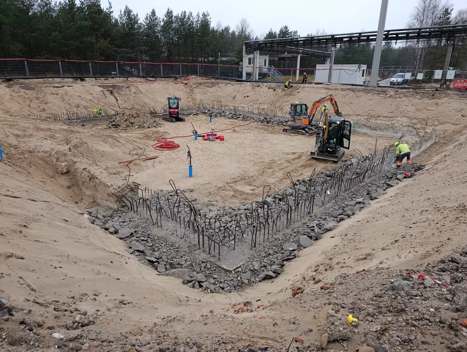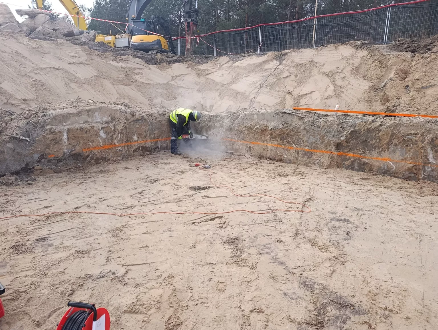 Tika veikta dzelzsbetona sienas demontāža un pamatu demontāža, izmantojot mehānisko tehniku un manuālu darbu. Darbu gaitā tika veikta betona kalšana, konstrukcijas atsegšana un nevajadzīgo elementu noņemšana.