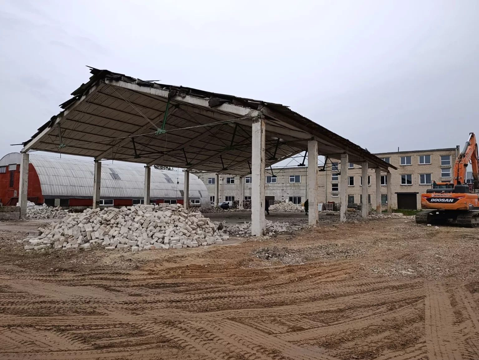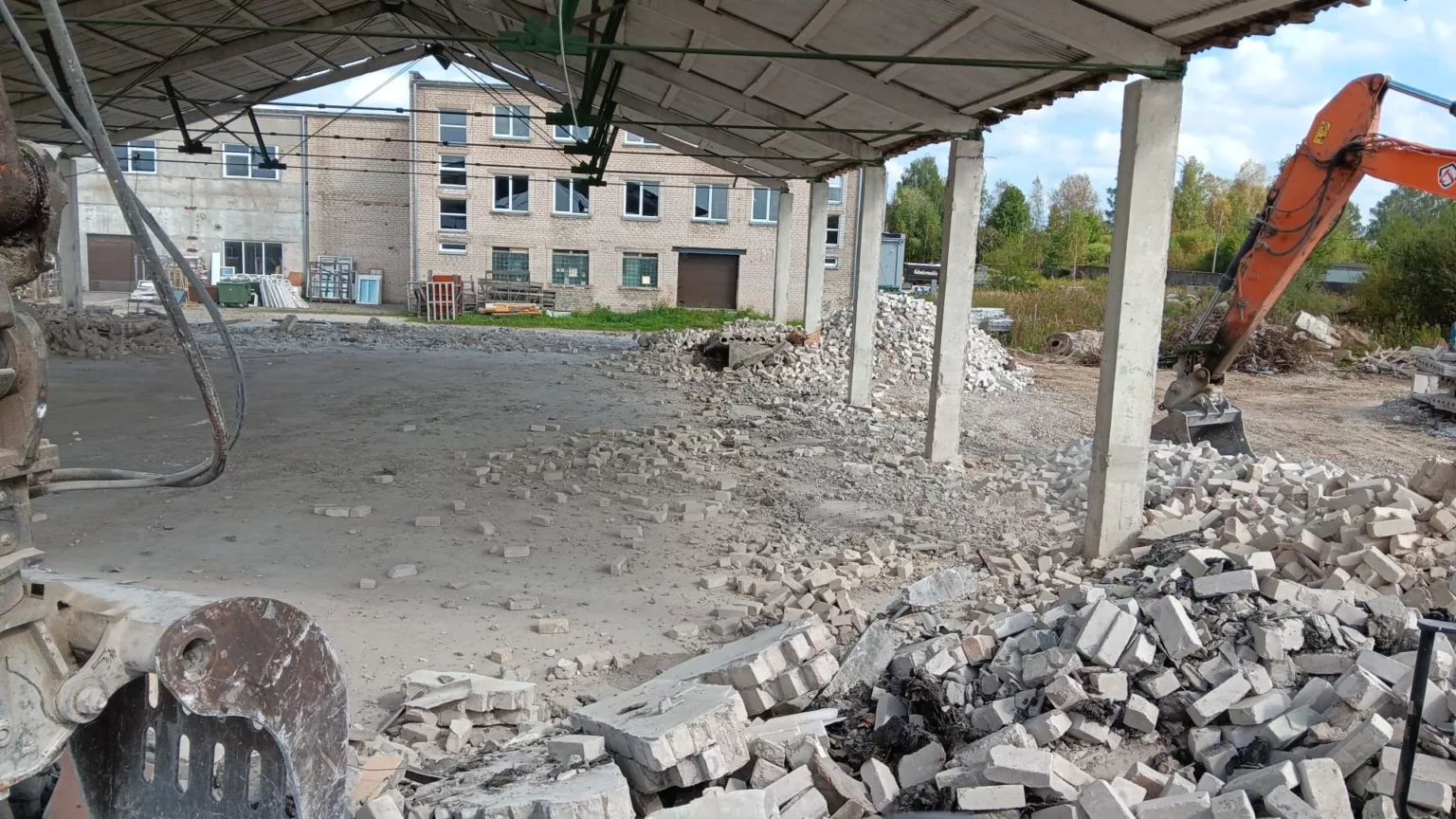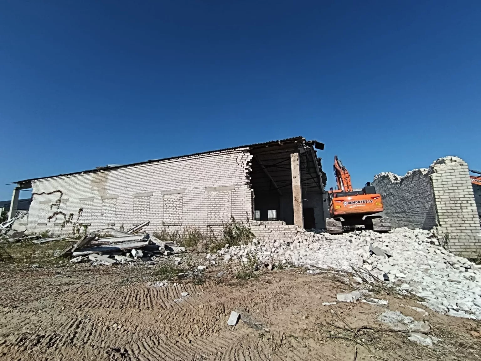 Tika veikta noliktavas ēkas demontāža un būvgružu utilizācija, nodrošinot visas nepieciešamās drošības prasības – būves mehānisko stabilitāti, ugunsdrošību un darba aizsardzību visa procesa laikā.